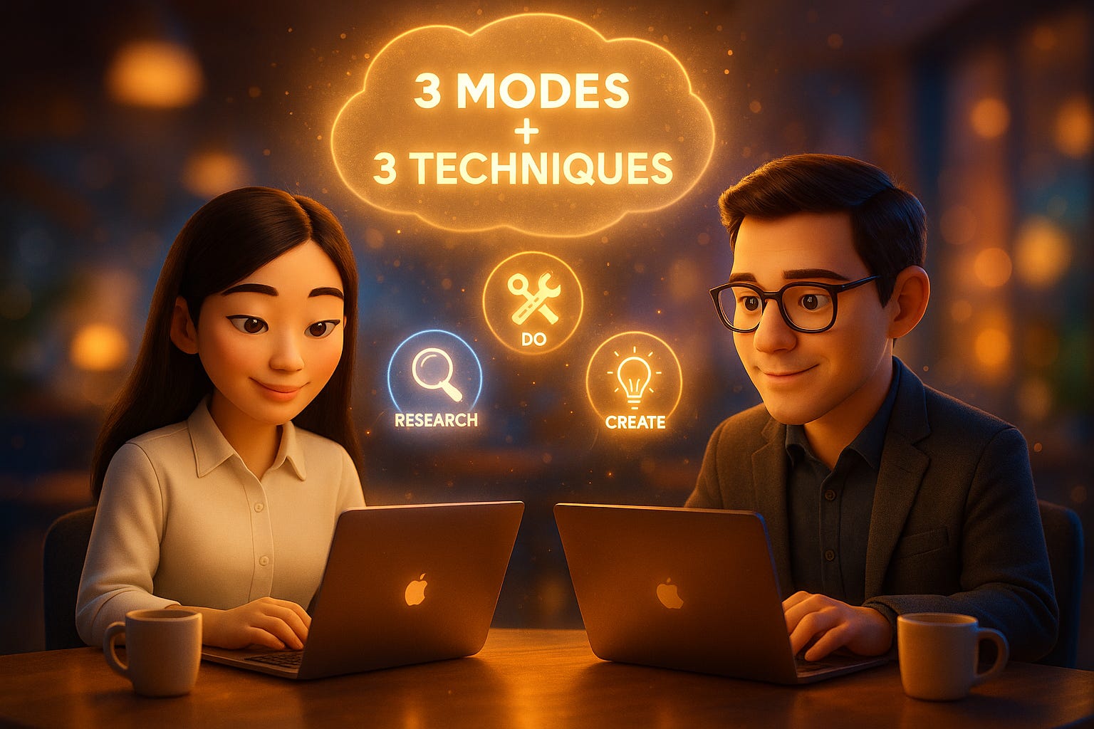 These three techniques transform how we use AI. They work in Research Mode, Do Mode, Create Mode. They work with ChatGPT, Claude, NotebookLM, any AI tool.