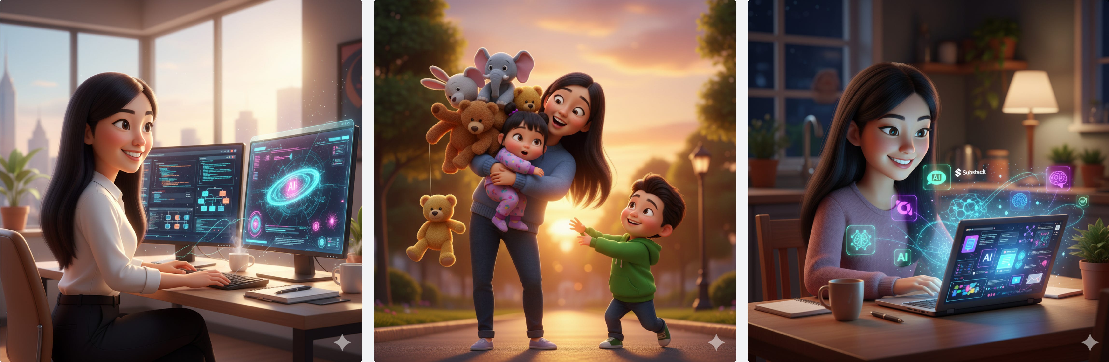 First off, the Pixar-style 3D cartoon images are my favorite style. I love watching 3D cartoons, and they make me feel delightful.