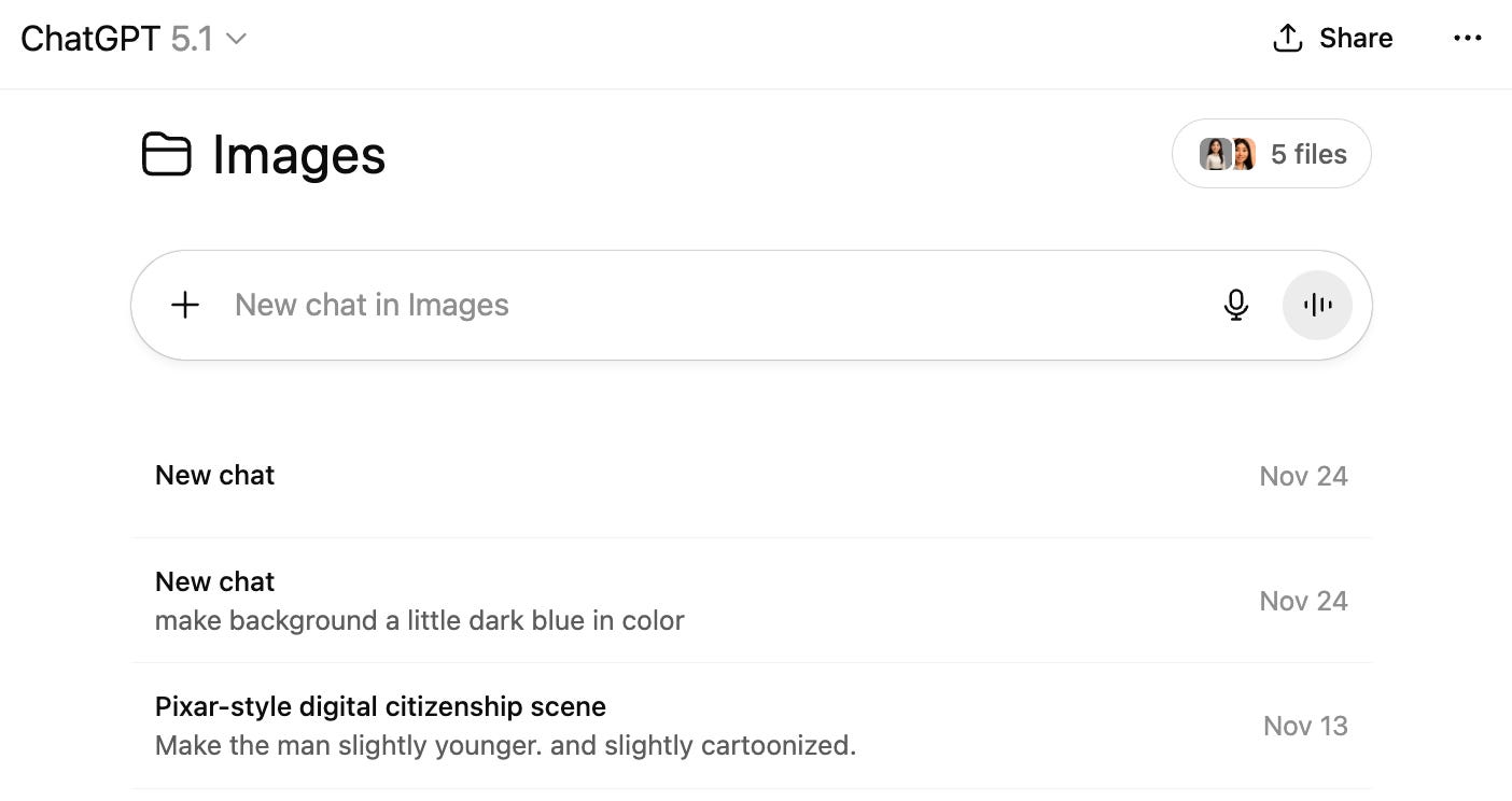 I have a specific project in ChatGPT called “Images,” with a system prompt and those base cartoon files in it. Each time when I need to create a 3D image for an article, I’d go to that folder and start prompting.