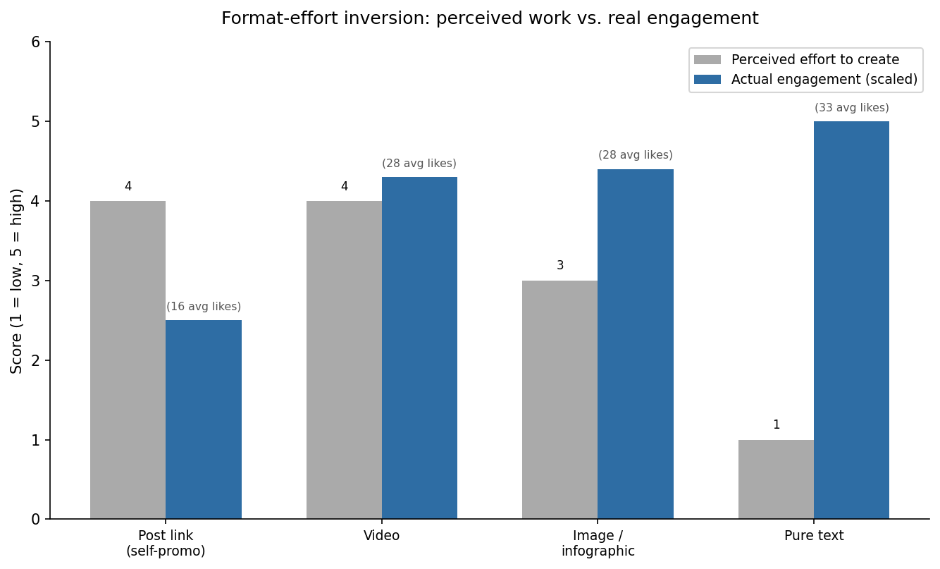 The formats that look like the most effort perform the worst. The ones that look effortless win consistently