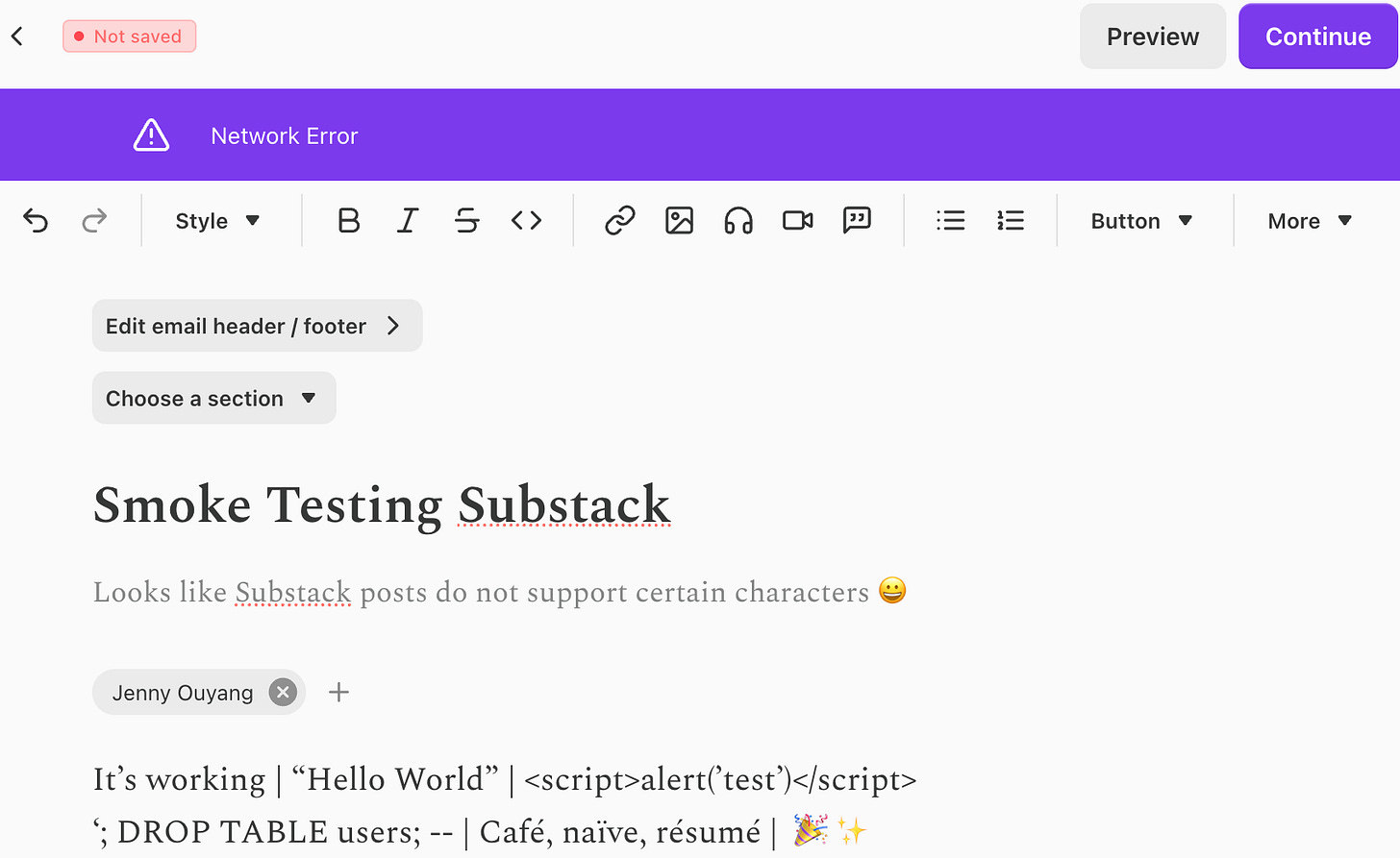 emoji, `,’, &, éClick the submit button 10 times rapidly